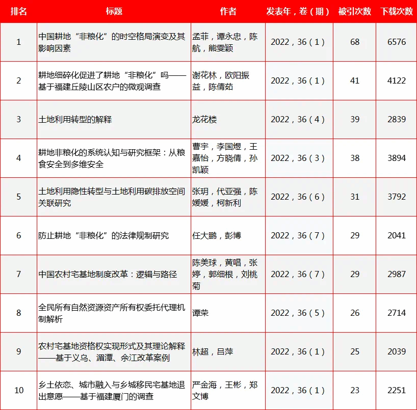 草莓视频 林超副教授论文入选2022年《中国土地科学》高被引论文TOP10
