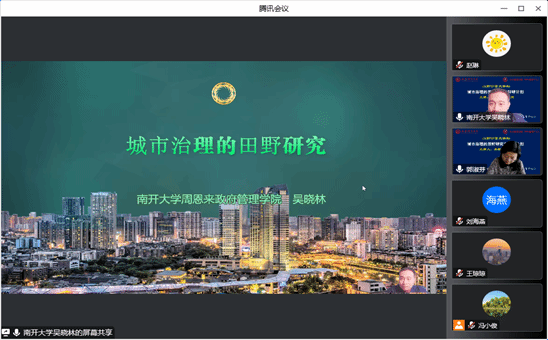 吴晓林教授首先通过对中国目前城市社区治理研究的田野场景的分析,提出了田野研究的基本特点。他从本体论、认识论和方法论三个层次,指出做研究的可持续性及小突进基础上的理论贡献,学术研究需立足小的切入点以解决大的问题,并从结构化视角、过程化叙事、基础化调查三个方面详细介绍了城市治理研究的不同层次。吴教授特别强调作为实证研究一部分的案例研究要着眼于对关系性整体的认知解释,通过解剖麻雀来分析事物的内在机理,揭示新发现、提出新理论。关于课题申报,吴教授重点从选题、破题、团队、创新点及写作规范等方面言简意赅地讲述了自身的体会和感受。在与谈和互动环节,学院青年教师就前沿学术问题和课题申报等内容与吴教授进行了深入交流和探讨。