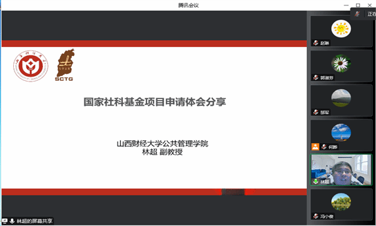 2022年11月8日下午,草莓视频 通过“尚公青年沙龙”学术平台举办第四场国家级科研项目申报经验交流会, 学院2022年国家社科基金项目主持人林超副教授做了《国家社科基金项目申报书写作体会》的报告,副院长冯小俊主持了交流会,100余名师生在线参加了经验交流会。
