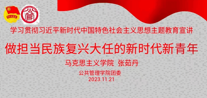 邀请主题教育“青年宣讲团”成员马克思主义学院张茹丹同学作“做担当民族复兴大任的新时代新青年”的主题宣讲。学院各级团学干部、团员和青年代表80余人参加。