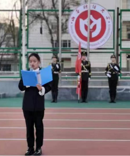 升旗仪式分“唱国歌升国旗”、“歌颂伟大的中国共产党”诗朗诵、“抗疫先进事迹分享”、“党史学习心得分享”、“齐唱校歌”等五个部分。