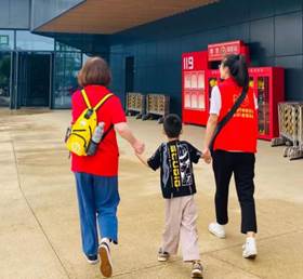 参观完毕后,志愿者与孩子们一起共用午餐。大家围桌而坐,志愿者和孩子们亲切交流,耐心帮助孩子们共进午餐,孩子们露出了如花的笑靥,感受到了集体的温暖和社会的关爱。午餐后,志愿者们开展“红色经典我来讲”活动,通过分享红色经典,讲述革命故事,铿锵有力的声音,让孩子们学党史历程、忆峥嵘岁月,充分展示孩子们昂扬向上的精神风貌的同时,加深了她们对党史知识的了解。在乘坐观光车游览过程中,志愿者还带领孩子们唱起了《我的祖国》,“这是美丽的祖国,是我生长的地方”——激情高亢的歌声唱响了每个人对美好生活的向往、对中华民族伟大复兴的中国梦的期待、对祖国繁荣昌盛的美好祝愿。