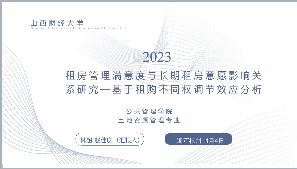 年会共分14个分论坛,分别是:房地产投资与市场发展、房地产新发展模式与共同富裕、房地产政策与可持续发展、房地产价格与金融风险、住房与社会问题、房地产与城市区域经济发展、城市土地利用与管理、保障性住房制度与运行机制研究、租购并举与住房租赁市场发展、城市更新与高质量发展、乡村振兴与特色小镇建设、绿色建筑与房地产低碳发展、数字经济、创新创业与房地产市场、城市交通与环境。由林超副教授指导,研究生赵佳庆撰写的《租房管理满意度与长期租房意愿影响关系研究—基于租购不同权调节效应分析》在年会分论坛进行汇报并获论文三等奖,并与浙江大学、首都经济贸易大学、上海对外经贸大学、河南财经金融学院等师生进行了深入交流。