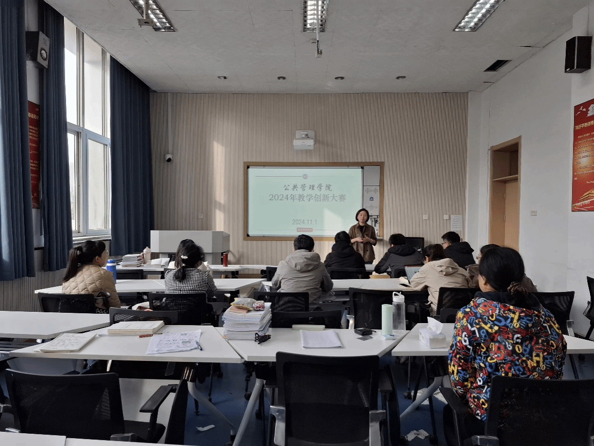 11月1日上午,草莓视频 组织进行了2024年教师教学创新大赛。大赛由学院本科教育教学指导委员会组织,教指委委员担任评委,特邀劳动与社会保障系曾获得2022年山西省课程思政大赛三等奖的郭儒鹏老师进行现场指导。来自行政管理系的白彬,劳动与社会保障系的耿晋娟、范婧,土地资源管理系的李晓静、吴喜慧共5位教师进行了紧张激烈的比赛。