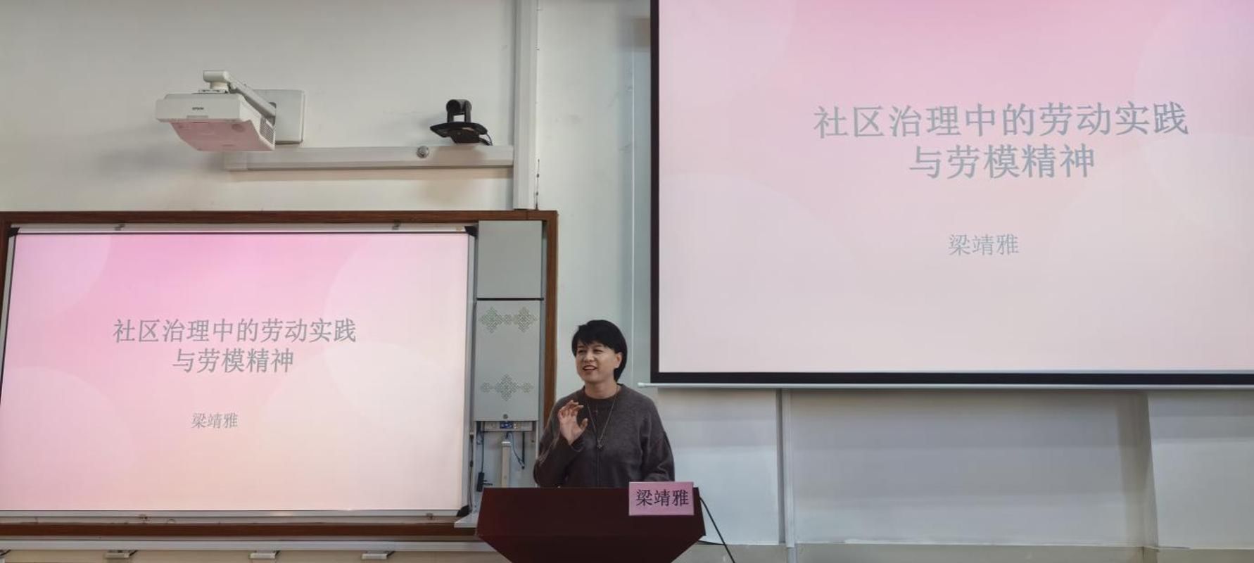 为了深入推进劳动教育入心入脑,激发学生对劳动价值的深入思考,突出活动的精神内涵,筹备组邀请梁靖雅书记做了 “社区治理中的劳动实践与劳模精神”专题报告。她结合新城社区治理实例,阐述劳动实践在社区环境改善、居民矛盾调解中的关键作用,深入解读了劳模精神 “实干为要、服务为民” 的核心内涵,为劳动教育工作者提供了基层视角的实践参考。